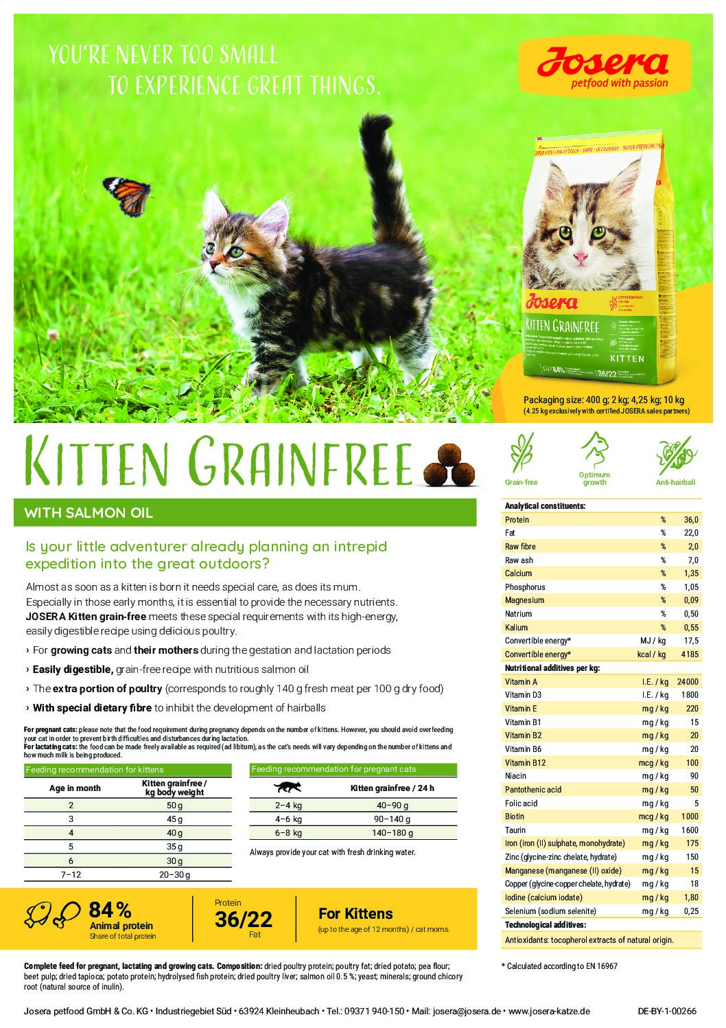 غذای Josera Kitten Grain Free مخصوص کوچولوی نازنینت طراحی شده تا از همون ماههای اول زندگی، رشد سالم و شادابی فوقالعادهای داشته باشه 💖